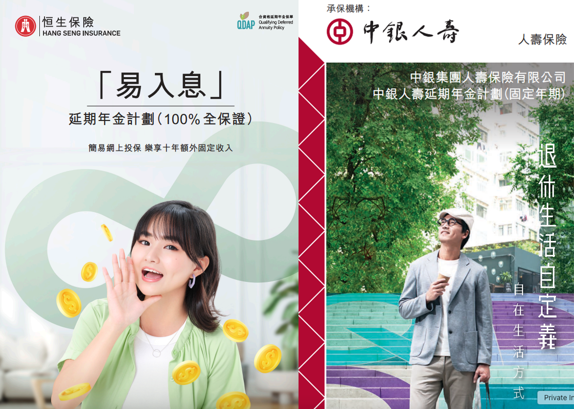 此外,中產買年金後,還為自己累積了一筆額外退休金。因為在完成扣稅年金供款期後(一般為5至10年),供款人可於指定年齡起(50歲或以後,視乎不同年金計劃)起每月領取年金,有利於在退休時更易達成財務安排。但要留意每款年金可領款的時間長短不同,終生領取的年金每月可領金額較小,但勝在「長攞長有」;至於只限於5至10年內領取的年金,每月可領款額會高得多,但不能保障買家至終老。