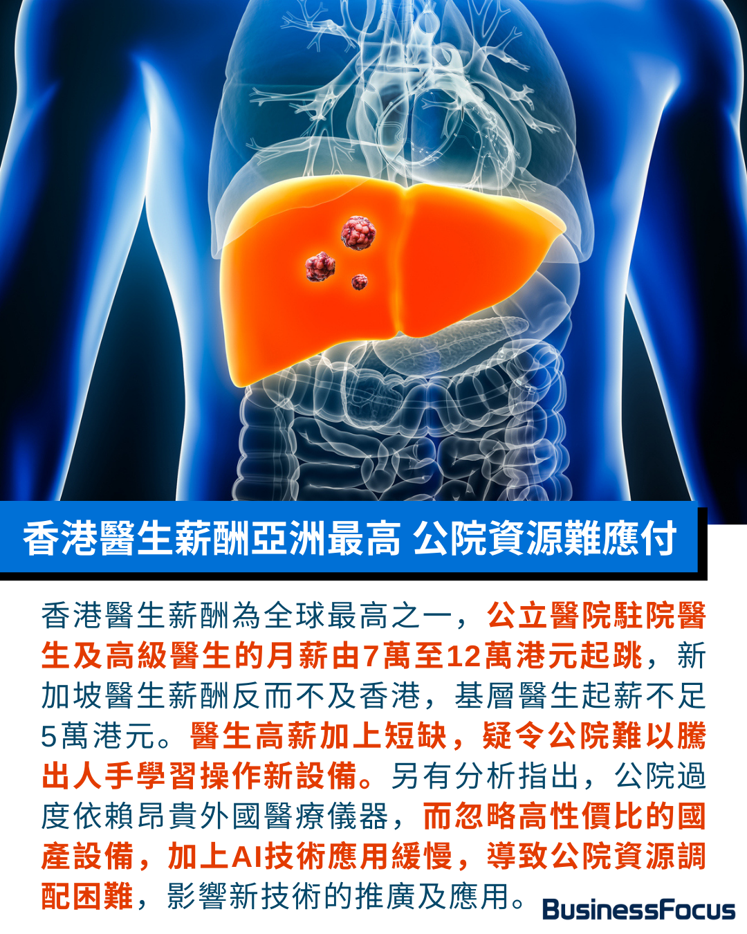 另一問題是,香港使用的醫療檢查儀器(如磁力共振、CT掃描)等幾乎全使用昂貴外國貨,卻鮮有用優質國貨,加上AI協助斷症的應用緩慢,這除了浪費了公帑,也令香港公院醫生較難騰出時間去學習及使用新治療儀器。