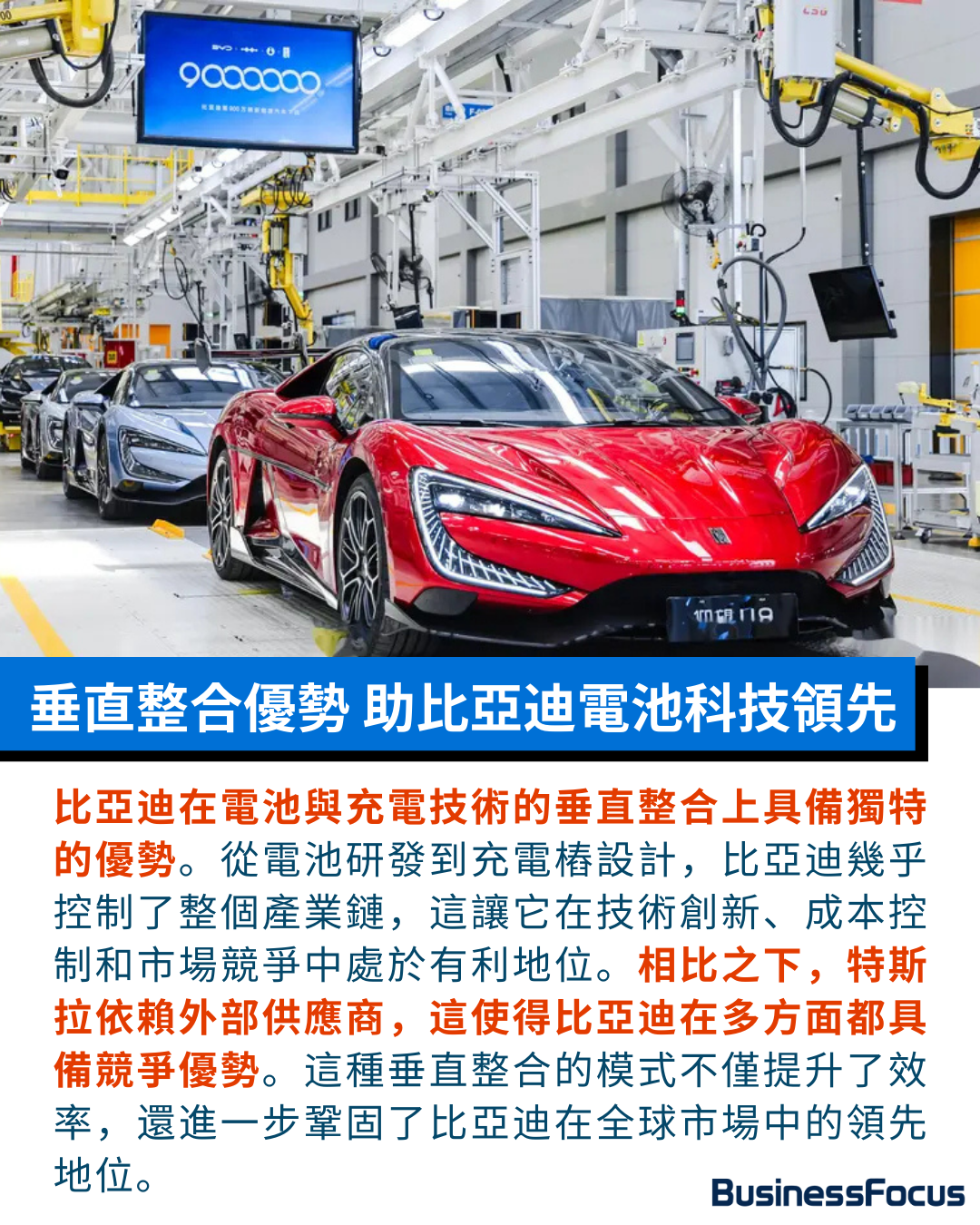 分析師亦坦言,比亞迪在電池和充電技術上的垂直整合能力是其獨特優勢。從電池研發到充電樁設計,比亞迪幾乎掌控了整個產業鏈,這與特斯拉依賴外部供應商(如寧德時代)的模式形成鮮明對比。