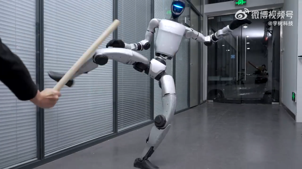 在人工智能(AI)與機器人高速發展的時代,中國以驚人速度站上全球舞台中央。杭州宇樹科技今天在微博發布一段影片,展示其人形機器人G1首次完成側空翻動作,落地後兼能平衡,如體操選手,瞬間吸了逾40萬人瀏覽。這一突破不僅刷新了網民對人形機器人能力的認知,也讓全球目光再次聚焦於這家由90後創辦人王興興領導的AI科企。從年初在央視春晚的舞蹈表演,到模仿李小龍的720度迴旋踢,再到如今的側空翻,宇樹科技的機器人動作越來越靈活,甚至可媲美真人舞者與武打明星。