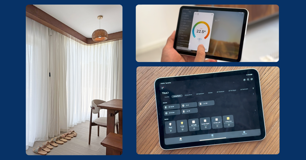 這獨立屋另一特色便是充分應用了智能家居科技,只要使用平板電腦以無線接駁,便能控制全屋的燈光、冷氣,以做到環保省電。而為了令業主既可享受落地玻璃無敵景觀,亦能在有需要時保障私隱或阻擋猛烈的陽光,故平板電腦可以遙距控制全屋主要窗戶的電動窗簾開關,非常實用及方便。