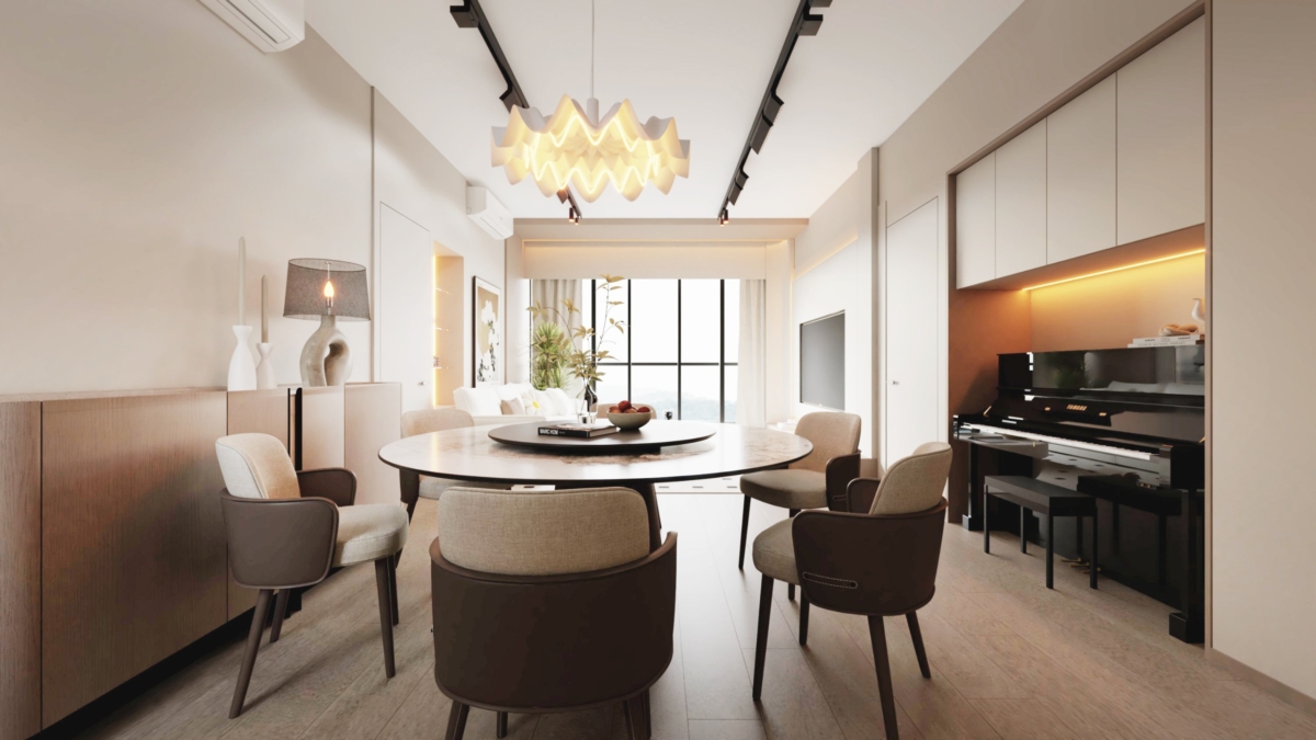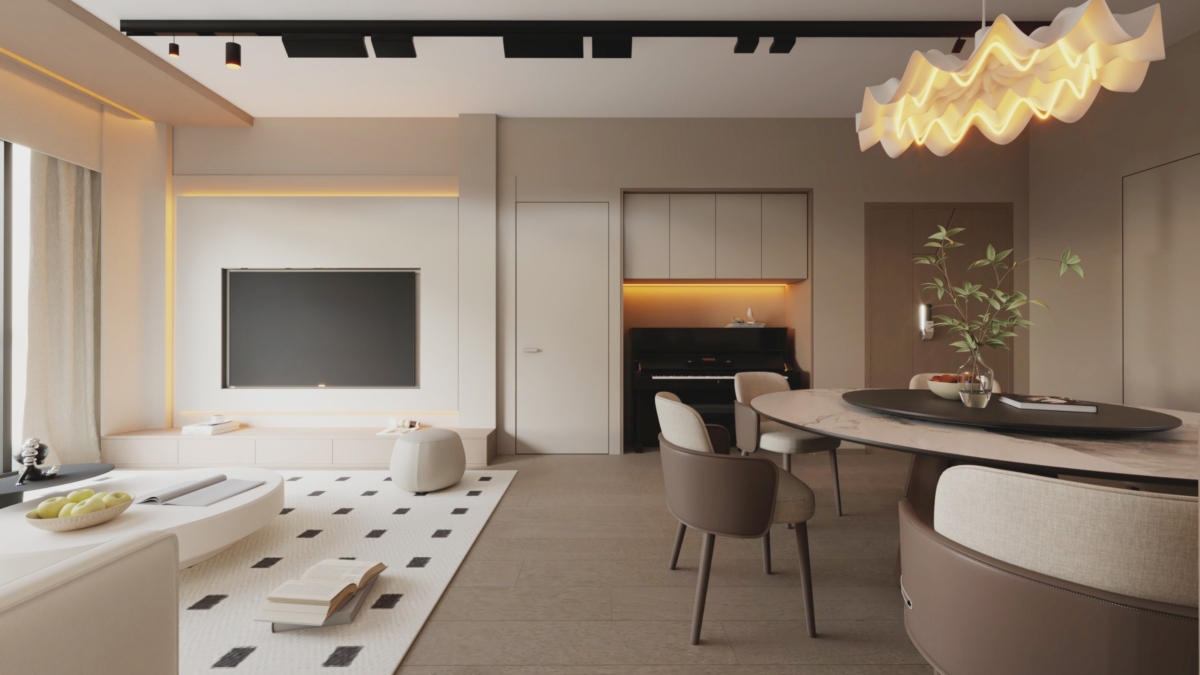 「198 Living Style」的裝修公司的另一代表作,是滿名山一個1350平方呎的大單位。入住該單位的家庭連戶主共一家五口,他們希望能享一個舒適、寬敞又有格調的完美家居。故裝修公司設計了一個線條簡約,顏色比較柔和的奶油風設計,在空間和設計上盡量簡約和留多些空間,務求令到舒適感增加。