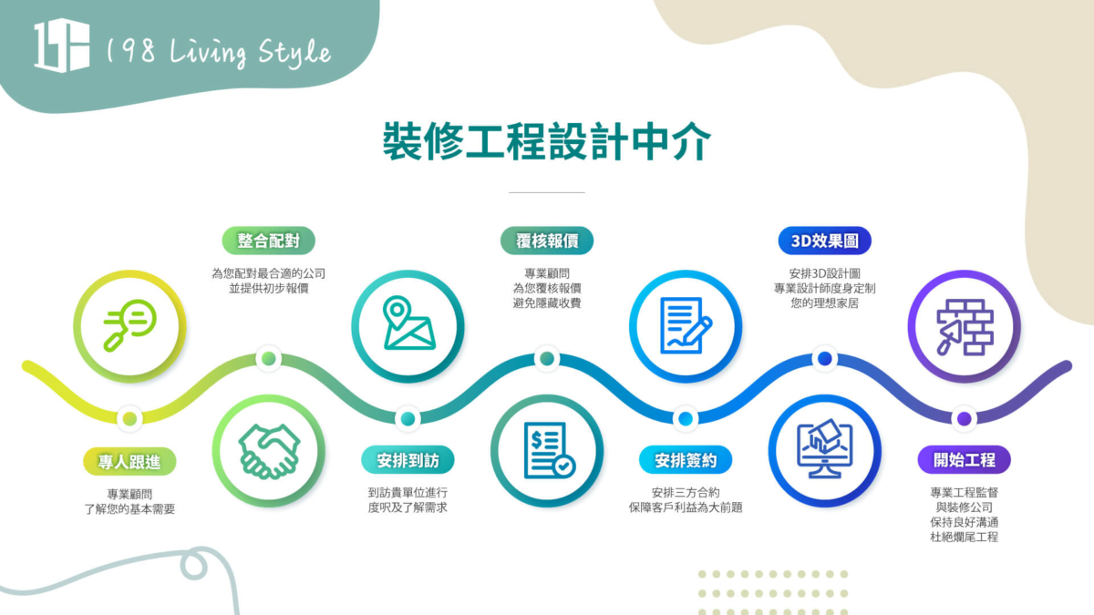 而「198 Living Style」最獲網民高度評價的服務之一,便是由專人為你貼心跟進及風格選擇極多的裝修設計服務,網站更表示獲得99.9%讚好。理由是它會因應消費者的需要,協助配對最合適的裝修設計公司,按需要提供不同價格的裝修服務。手機App內更提供不同風格裝修的實例個案圖片,以確保透明度。