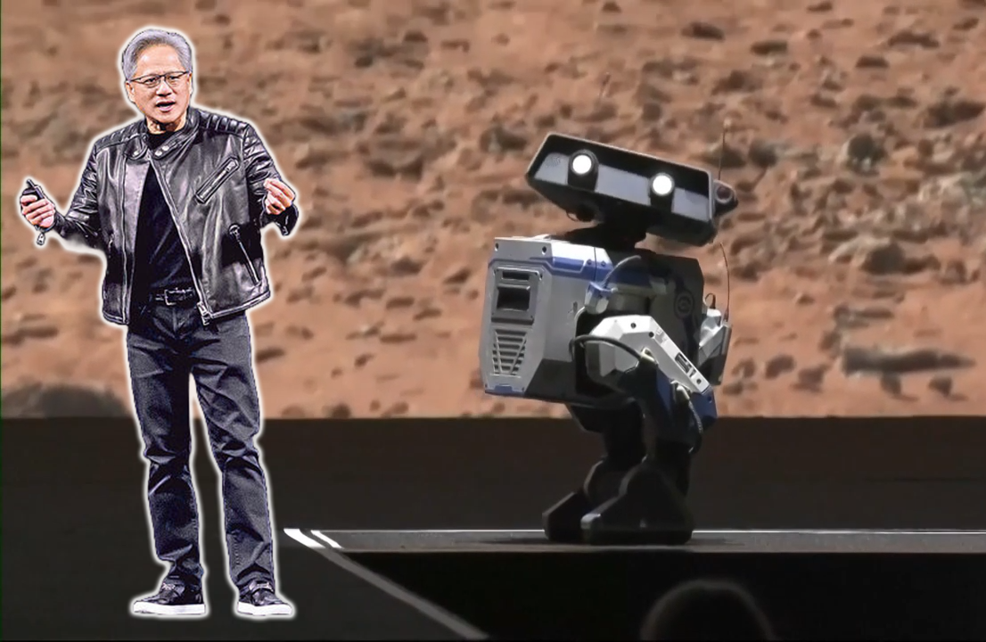 「Blue」的首次公開亮相並非偶然,而是英偉達精心策劃的高潮。黃仁勳在演講尾聲播放了一段動畫短片,展示這隻靈感源自《星球大戰》的機械人如何在虛擬環境中靈活移動。接著「Blue」機械人實體登台,與黃仁勳展開即興互動。當黃仁勳問道「Hi,Blue,你心情如何?」時,它以輕快的電子音回應,並微微搖晃身體;當牠被稱讚「你真聰明」時,「Blue」更是興奮地搖擺尾部,動作流暢自然,宛如一個充滿個性的小生命。這一幕不僅展現了其背後尖端技術的魅力,也讓人感受到一股難以抗拒的親和力。