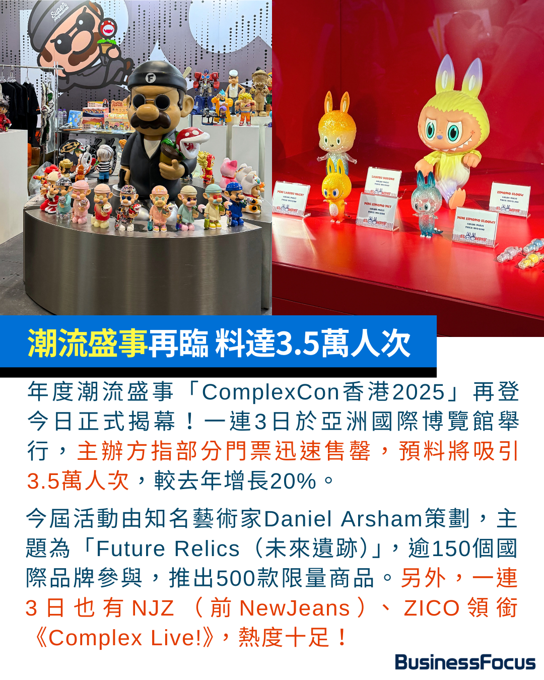 年度潮流盛事「ComplexCon香港2025」再登陸香港,今日正式揭幕!一連3日於亞洲國際博覽館舉行,主辦方指部分門票迅速售罄,預計將吸引3.5萬人次,較去年增長20%。今屆活動由知名藝術家Daniel Arsham策劃,主題為「Future Relics(未來遺跡)」,有逾150個國際品牌參與,推出500款限量商品。另外,一連3日《Complex Live!》也有NJZ(前NewJeans)、ZICO領銜,熱度十足!