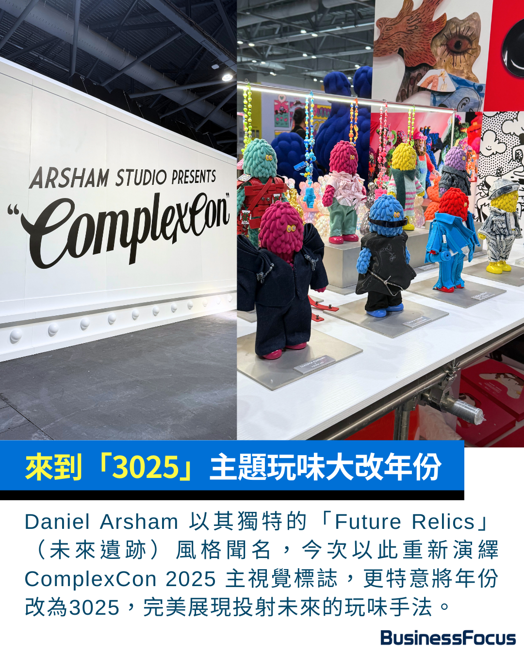 Daniel Arsham 以其獨特的「Future Relics」(未來遺跡)風格聞名,今次以此重新演繹 ComplexCon 2025 的主視覺標誌。今次更特意將年份改為 3025,完美展現 Arsham作品投射未來的玩味手法,標誌更運用獨特的雕塑變形美學,將經典元素與現代風格完美結合,充分展現其精湛的藝術造詣和創作理念。