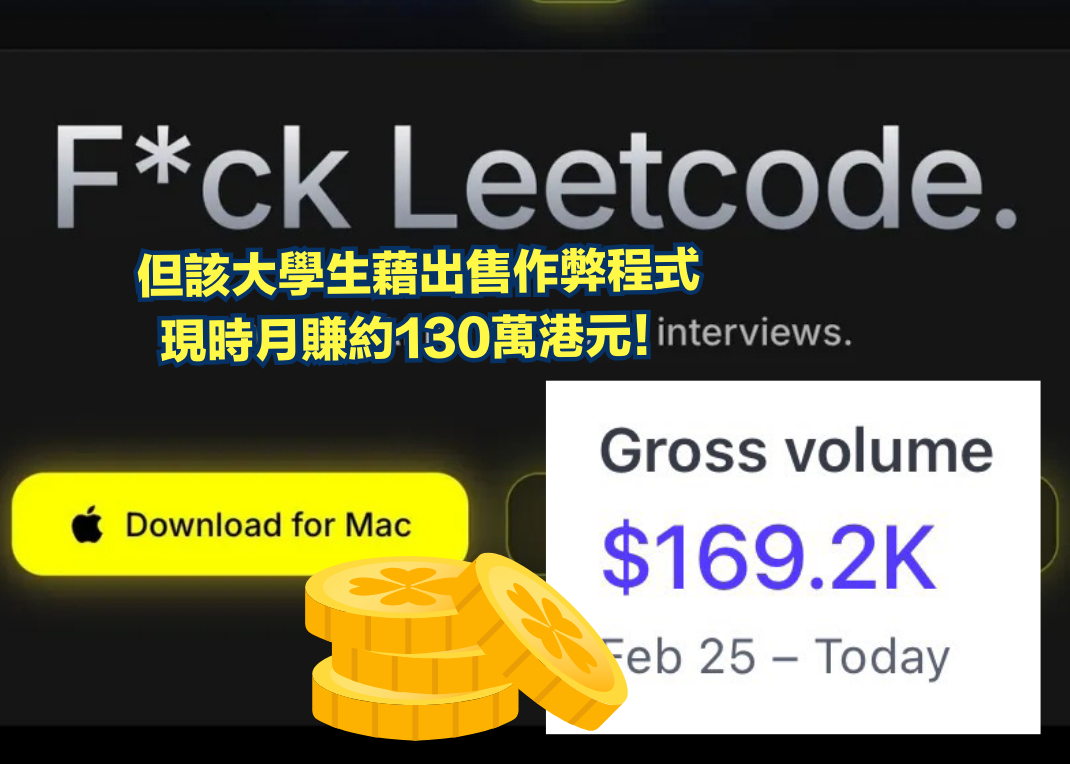 不過停學這懲罰,對今次「作弊風波」的主角Roy Lee也許並無所謂。因為他爆紅之後,單是憑著出售自創隱形作弊程式「Interview Coder」,已經月賺接近130萬港元,據報道他更有機會年賺逾1,000港元萬,羡煞旁人。對於外界批評他非法獲利,Roy Lee堅持他創作作弊程式的初衷,是要打倒遙距面試「惡魔程式」Leetcode,因無數程式師受盡Leetcode的折磨。