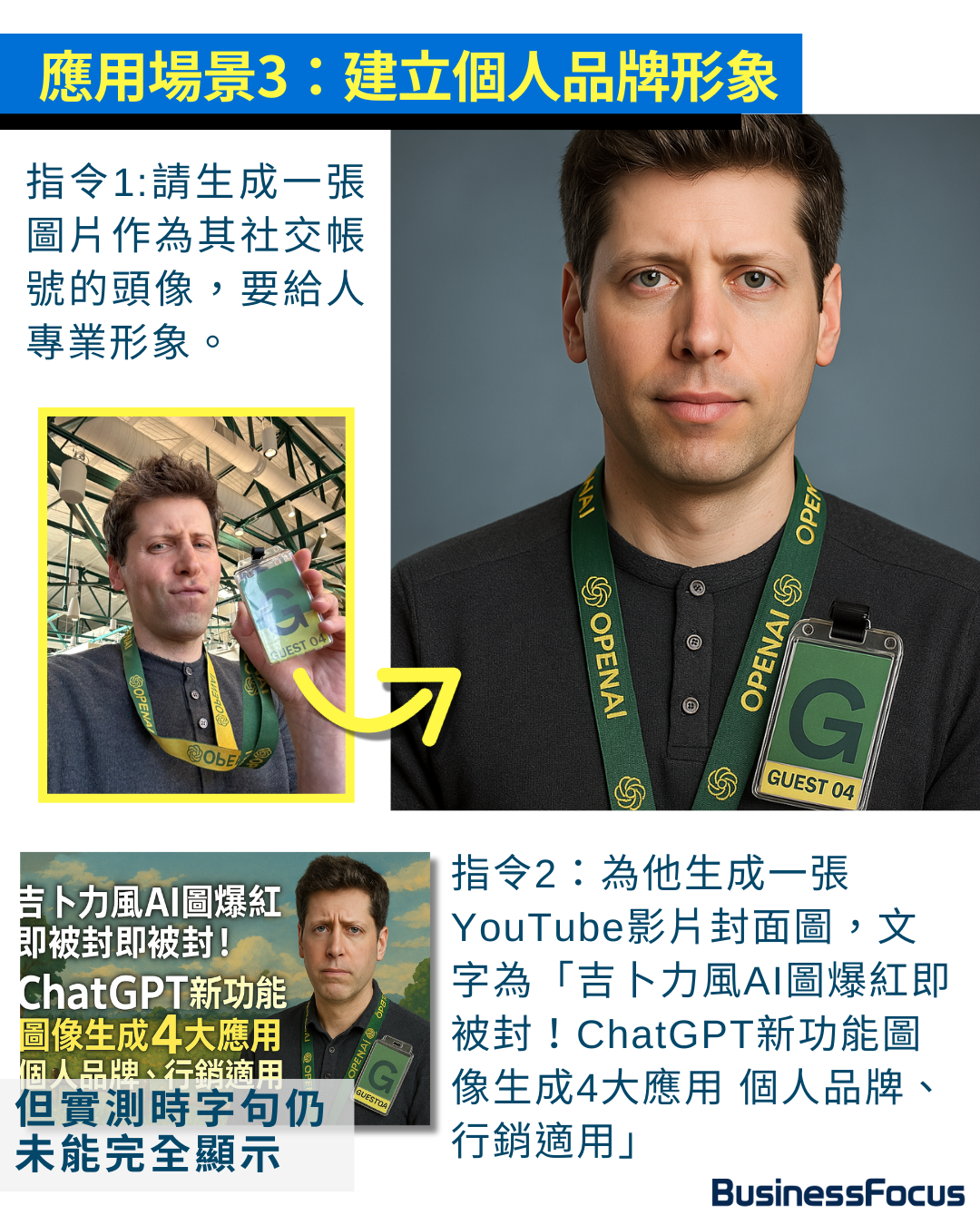 指令2:為他生成一張YouTube影片Thumbnail,文字為「吉卜力風AI圖爆紅即被封!ChatGPT新功能圖像生成4大應用 個人品牌、行銷適用」