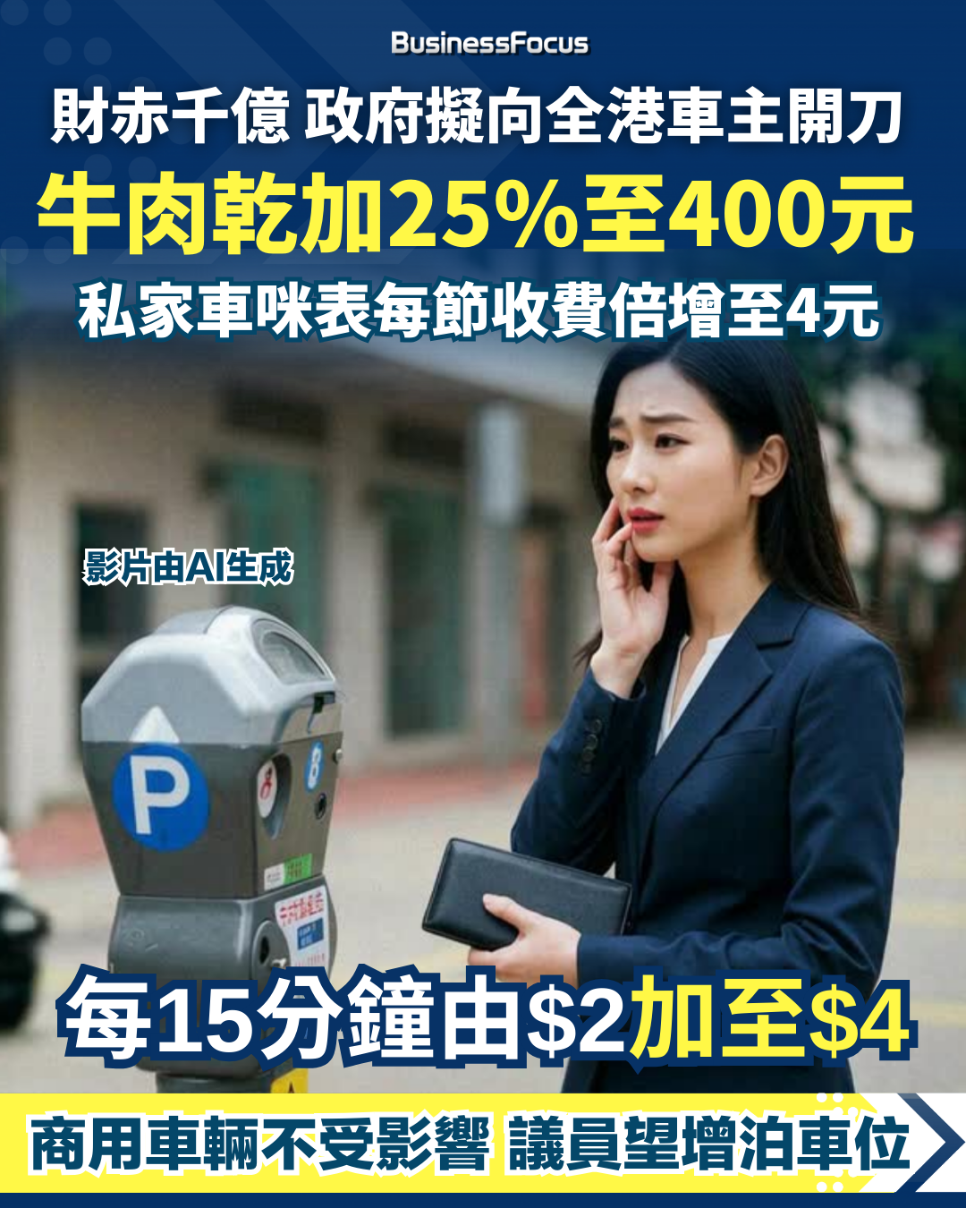 政府擬向車主開刀 牛肉乾加至400元 咪表收費倍增 電動車牌費或加4倍