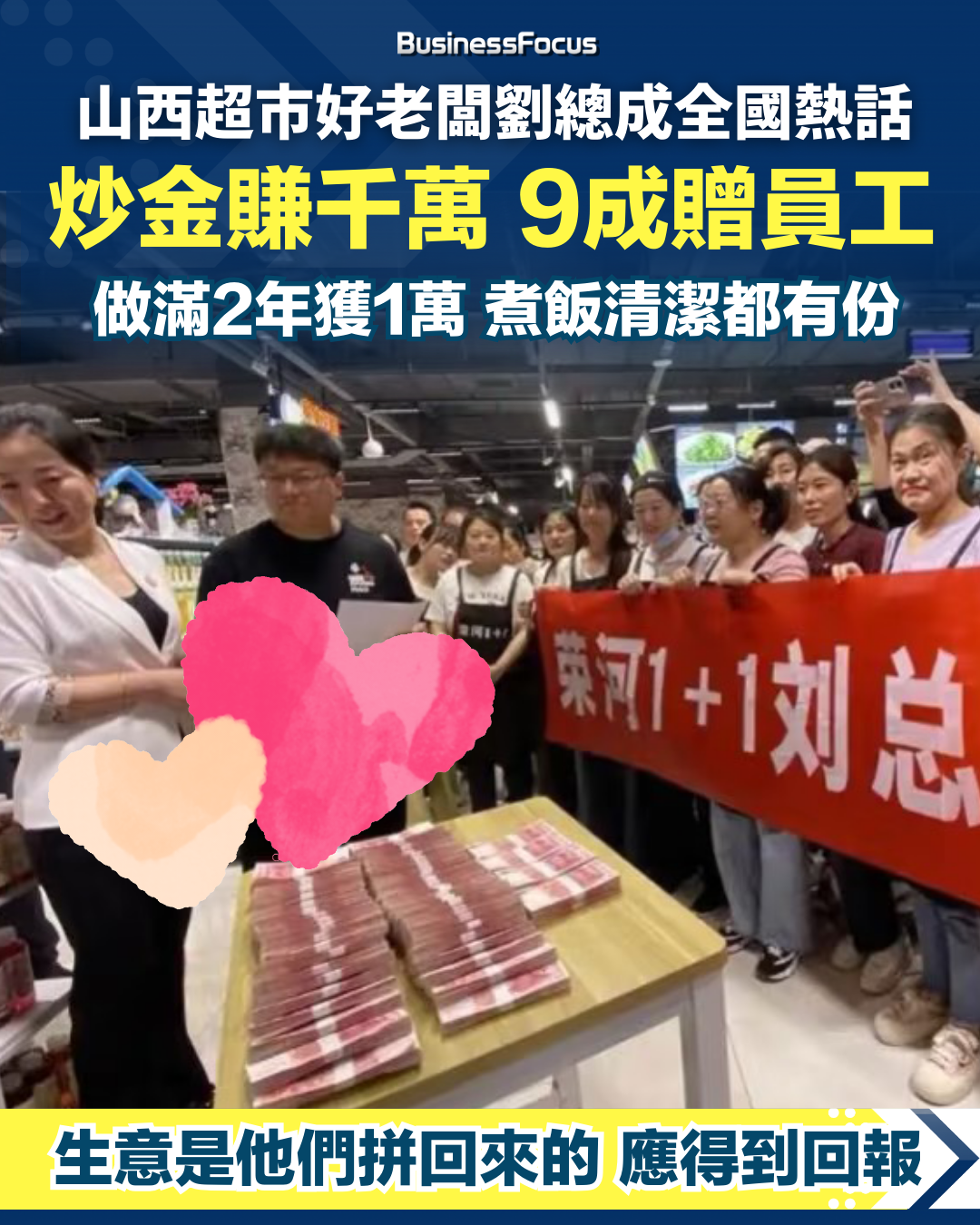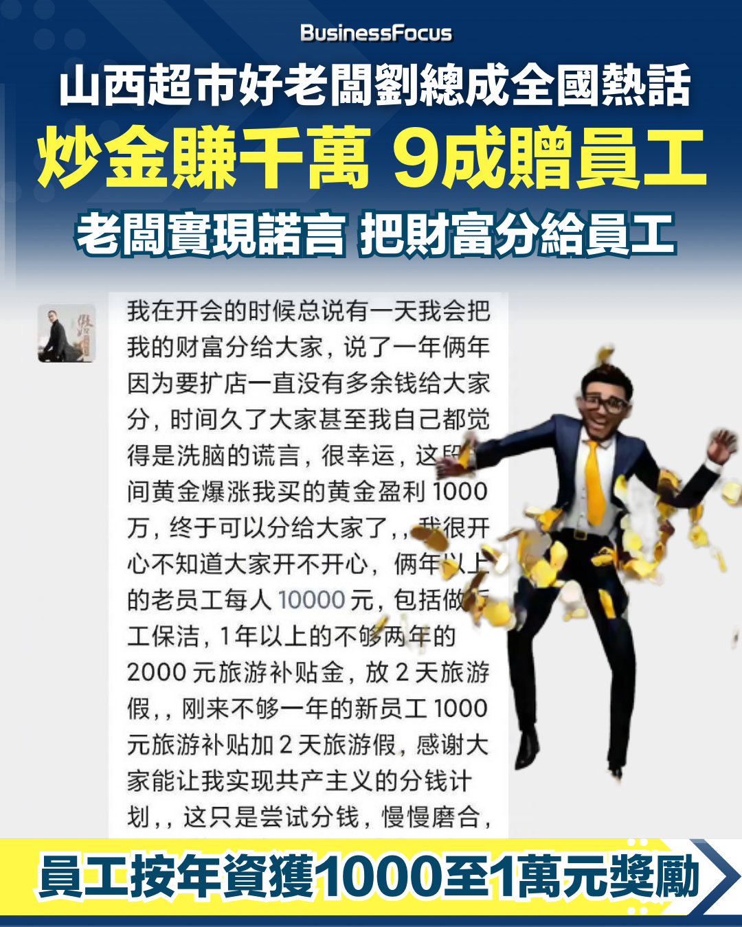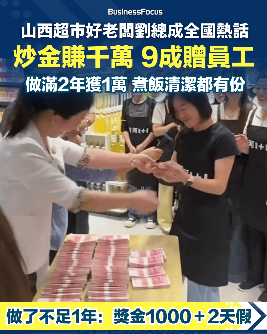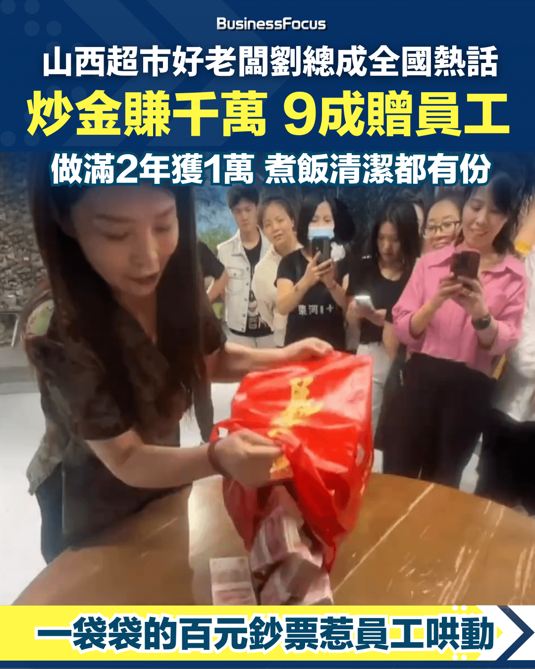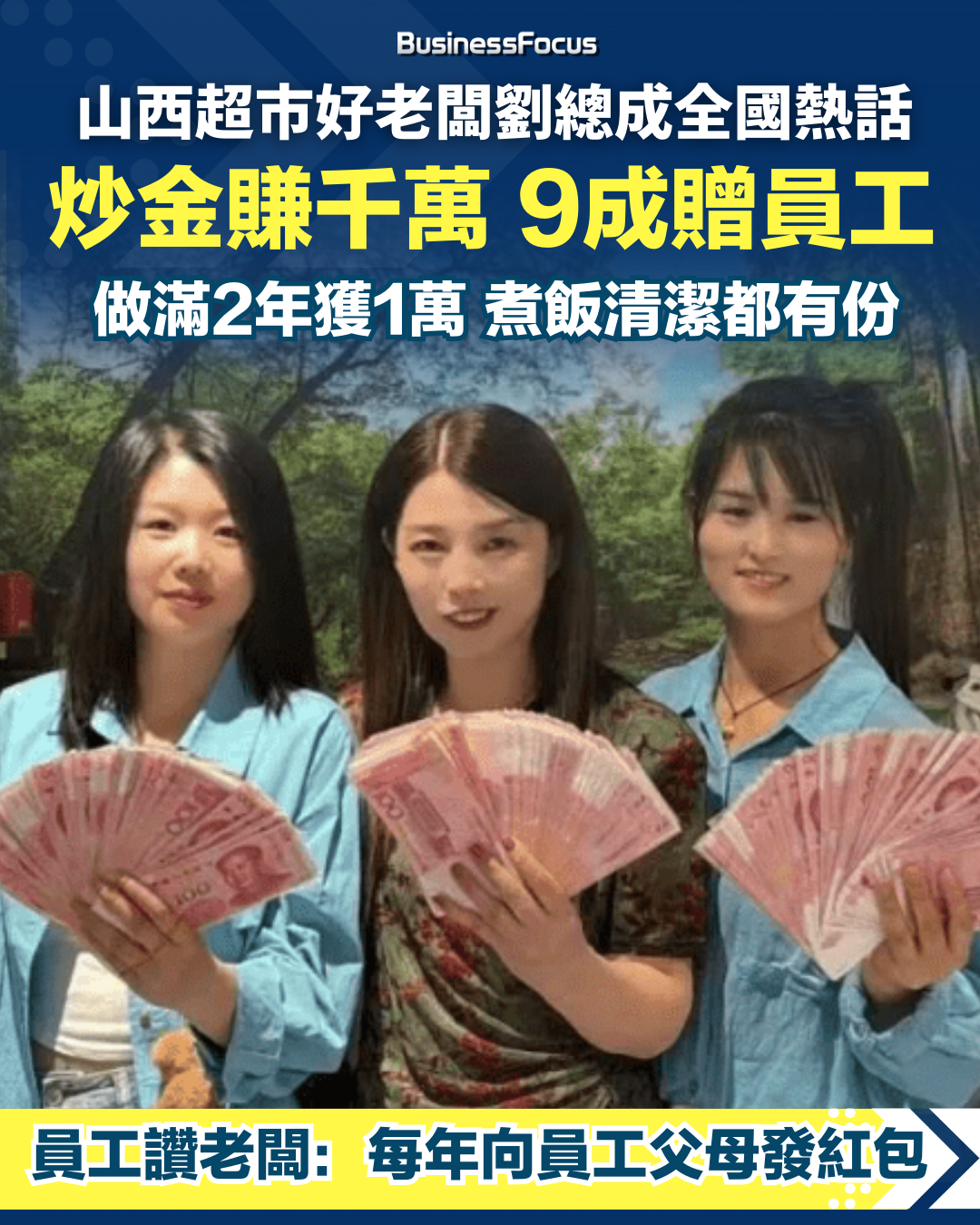 山西超市好老闆劉總 炒金賺千萬 9成贈予員工 每人最多1萬 煮飯清潔都有份