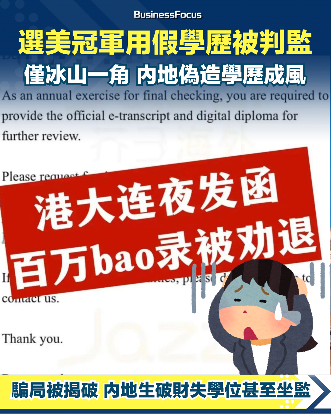 曾於內地選美獲冠軍的28歲女網紅李思萱,因為向入境處及港大訛稱曾在美國哥倫比亞大學畢業,以獲取港大取錄修讀碩士課程,遭檢控以欺騙手段取得服務及管有虛假文書兩項罪名。她早前認罪獲減刑三分一,但仍需監禁240天。李女曾供稱向內地中介支付高達38萬元人民幣,才獲得美國假學歷,事件揭出內地假證書猖獗且像真度高,假學歷收費更可高達50萬元。有教育界人士警告偽造文書最高可判監14年,呼籲擬進修學生勿以身試法,致前途盡毁。