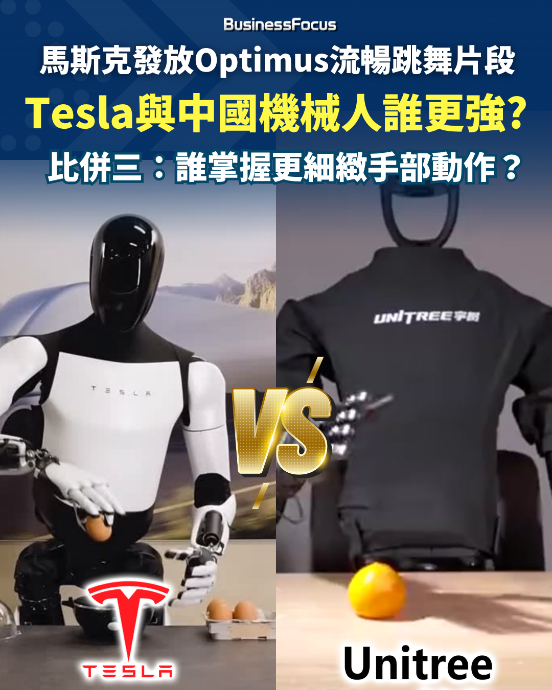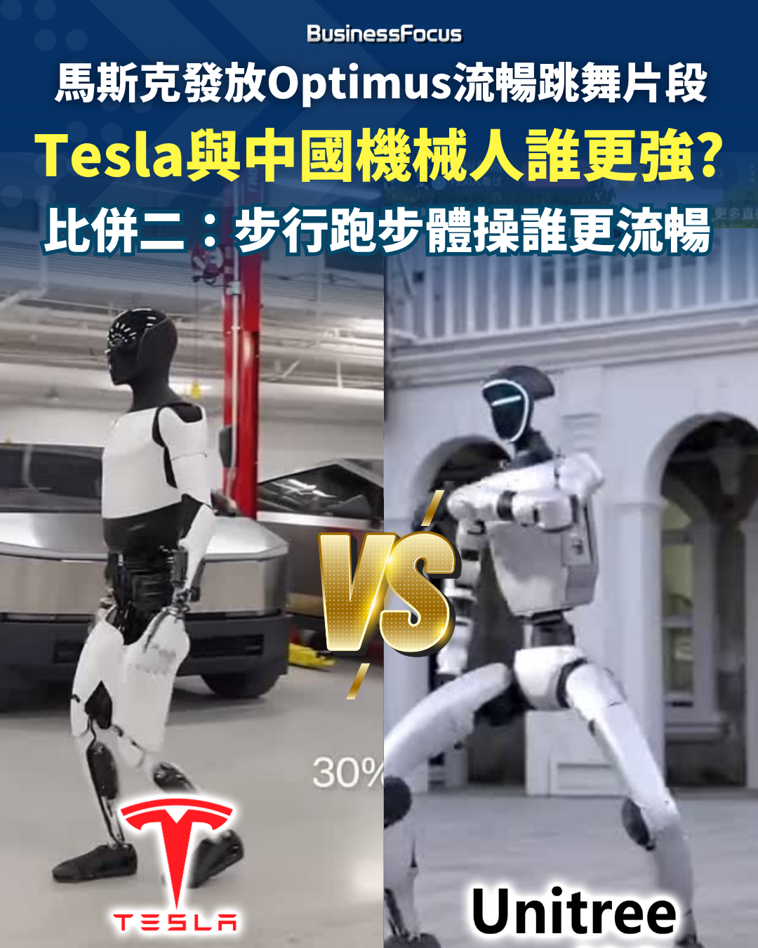 不過,若單以機械人性能而論,馬斯克Tesla的Optimus(擎天柱)機械人與曾經在中國「春晚」跳舞揚威、並被譽為中國最先進的宇樹科技(Unitree)機械人相比,究竟孰優孰劣?