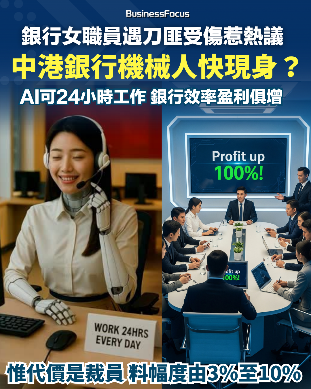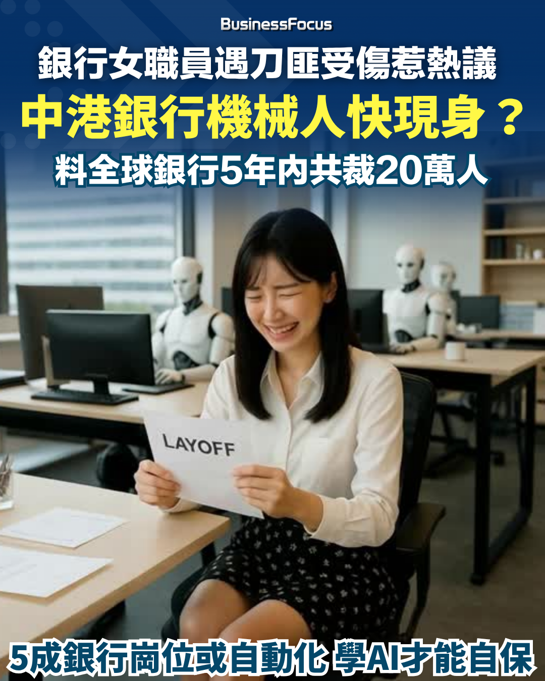 刀匪劫案 令中港銀行機械人加快現身? AI令全球銀行5年裁員20萬人