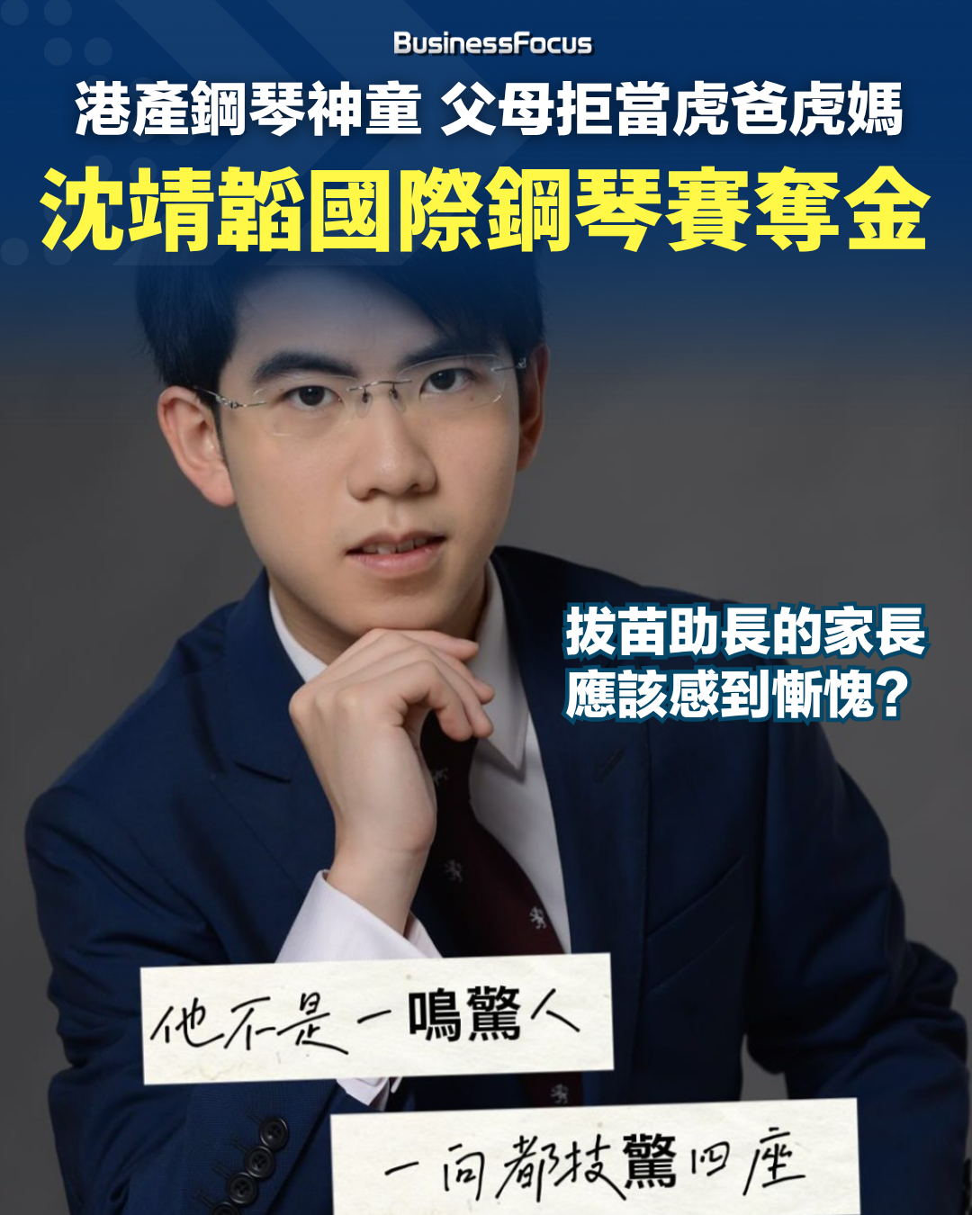 曾被譽為香港鋼琴神童的沈靖韜(Aristo Sham),一度因新冠疫情致無法公開演奏致曾陷人生低潮,但他沒氣餒,「十年磨一劍」,近日在美國德州舉行的「范克萊本國際鋼琴賽」終擊敗全球340名高手,成為半世紀以來上述全球四大鋼琴賽的首位香港冠軍,揚威海外。事件帶出天才的背後父母雖然是補習名師及鋼琴教師,但從不拔苗助長,甚至「放縱」孩子打機減壓,並默默給予支持,與中國流行的「虎爸虎媽」育兒策略成強烈對比。