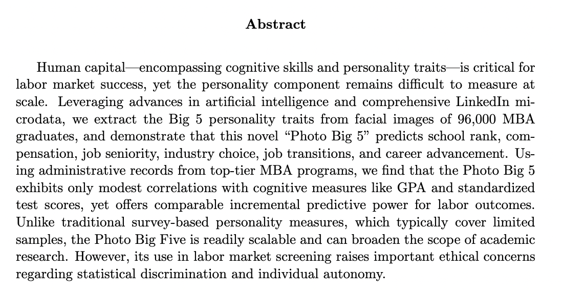 更有趣的是,這項研究表明,AI模型能夠通過人臉的表情和特徵,標記出那些情緒穩定、責任心強的人,並且發現這些人往往擁有更高的收入和職業發展。這或許是因為那些在面對壓力時保持冷靜的人,通常能更好地應對工作中的挑戰,並在職場上取得更多的機會。