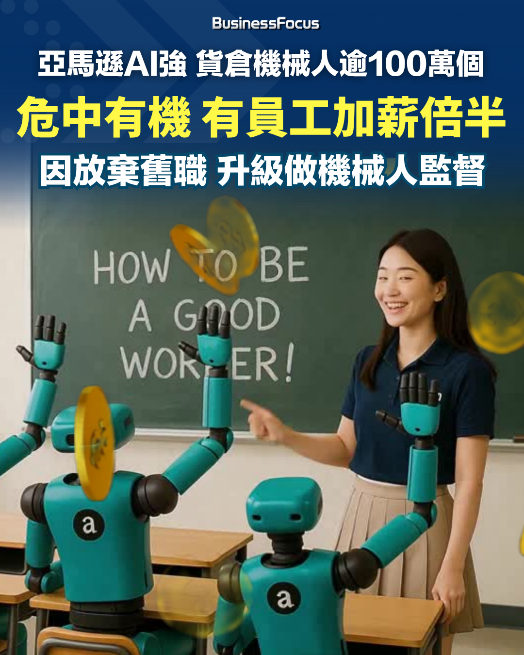 亞馬遜(Amazon,美股:AMZN)擅長AI,其物流倉機械人數字最新已突破100萬個,並快將超過集團人類員工的數量,當中包括更像真人的靈活AI機械人。但由於亞馬遜自2022年起累計已裁員逾2.7萬人,令不少員工憂心會再出現裁員潮。不過,現實是「有危亦有機」,有亞馬遜員工即透露因為及時轉型從事監督機械人工作,令薪酬暴增1.5倍。那麼未來的AI及機械人浪潮,究竟意味著全球打工仔的末日,還是升職加薪的良機?