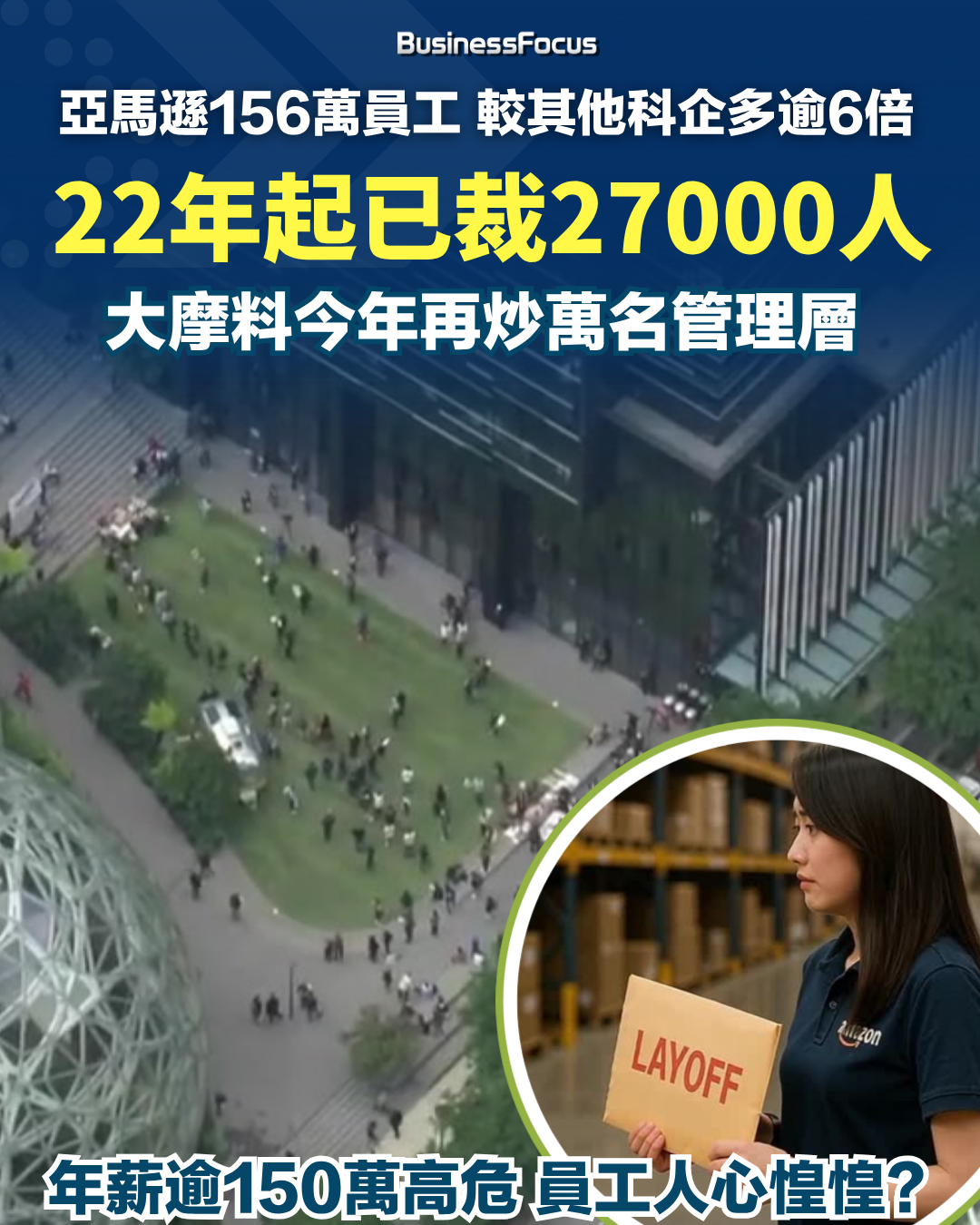摩根士丹利(大摩)早前一份內部報告即預測,亞馬遜有意在今年裁減約1.4 萬名管理層人員,但外界未知會否「成真」。摩根士丹利的報告指出,亞馬遜每名管理層每年的聘用總成本大約在20萬至35萬美元(約156萬至273萬港元)之間。他相信亞馬遜很可能大幅縮編全球管理職人數,從目前的10.6萬人、大幅減少至 9.2 萬人,因此每年可節省21億至36億美元(164億至281億港元),從而令公司年度營收提高3至5%。