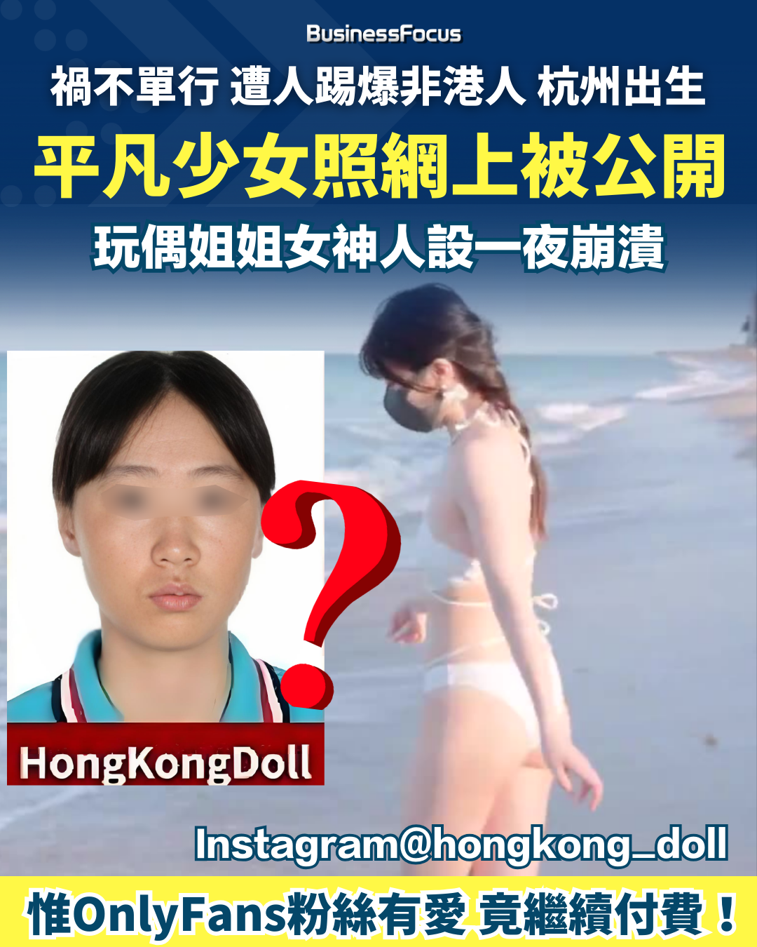 她的回應,似印證了內地近年傳出一張她少女時代「其貌不揚」的照片,顯示她口罩之下絕非女神樣貌的說法。不過難得的是,她不少OnlyFans粉絲並未有因為「醜樣照片」而放棄她,還繼續課金,令人感動。不過一些香港網民對她始終「有意見」,因為玩偶姐姐出道時曾以「HongKongDoll」推銷自己,但其實她是內地出生、年輕時已往美國讀書及生活,與香港似乎關係不大,故有誤導粉絲的嫌疑(但另有說法指她曾來過香港讀書)。