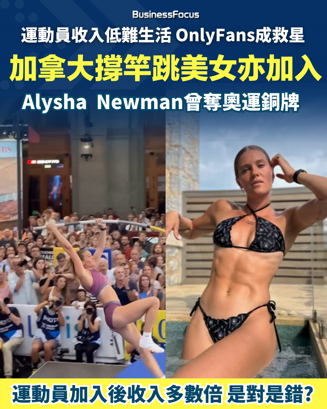 像加拿大的美女撐竿跳選手Alysha Newman,在巴黎奧運會摘下銅牌,但媒體發現她原來亦有開設OnlyFans專頁以賺錢。Alysha Newman在Instagram有超過67萬粉絲,其個人主頁上便有OnlyFans的連結,平常月費為12.99美元(約101港元)。不過她的做法,也受到不少傳統派人員批評。