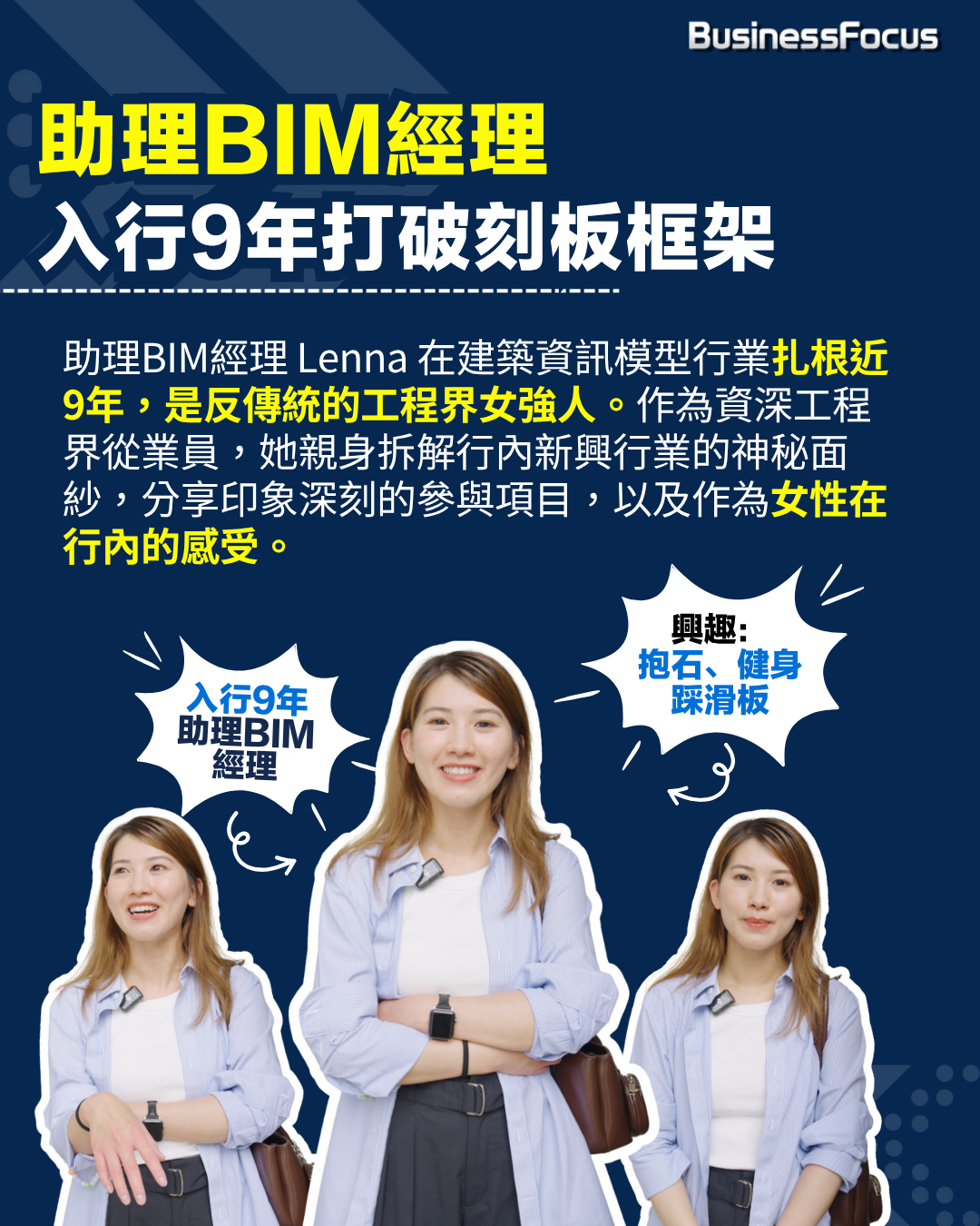在普遍被視為男性主導的建築工程界,也有不少女性憑藉專業與獨特優勢,闖出自己的一片天。助理BIM經理 Lenna,在建築資訊模型行業扎根近9年,是反傳統、化解矛盾的工程界女強人。作為資深工程界從業員,她在訪問中拆解新興行業的神秘面紗,分享印象深刻的參與項目,以及作為女性在行內的感受。