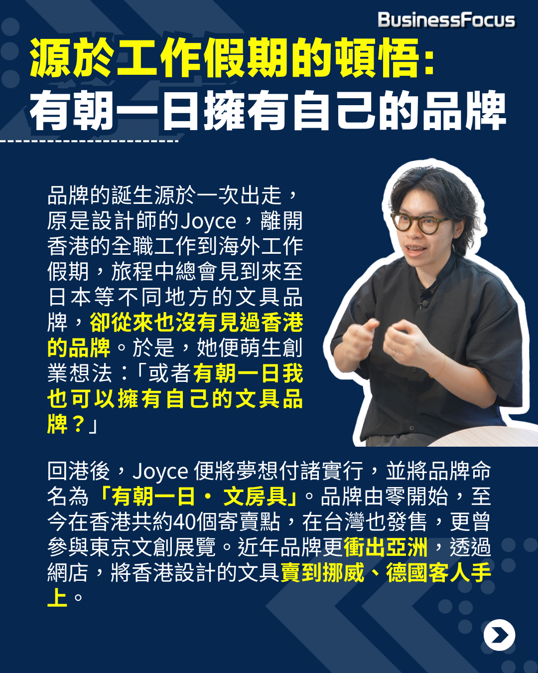 每個人心中都夢想,渴望「有朝一日」可以達成,可能是環遊世界,可能是學習新技能,也可能是創一番事業。對於港產文創品牌「有朝一日• 文房具(Someday Stationery)」創辦人 Joyce 來說,她的「有朝一日」就是設計出香港文具,並帶到世界各地。