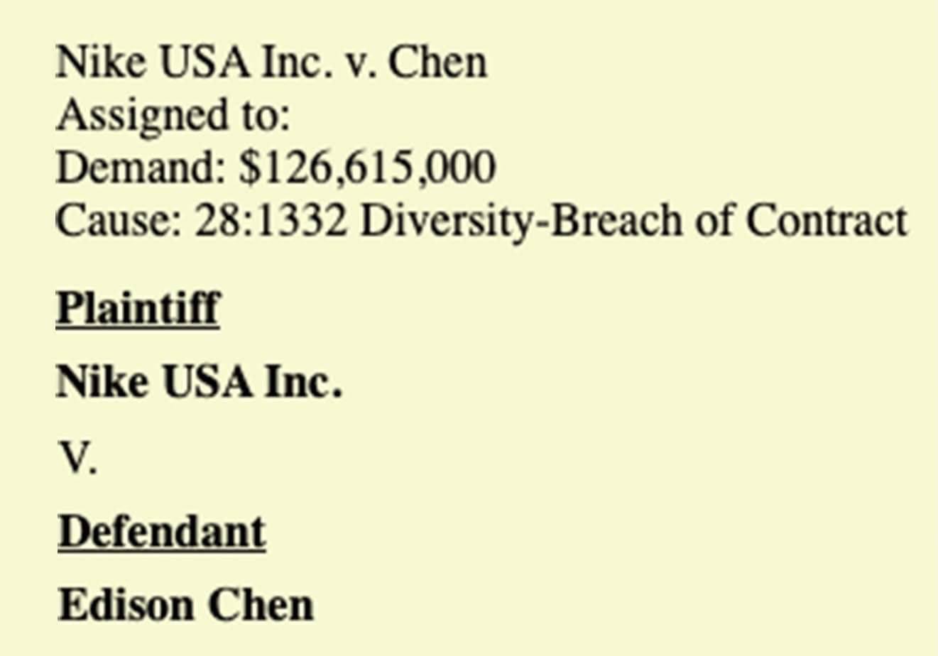 早前部分媒體及社交平台廣傳「Nike 向陳冠希索償 1.26 億美元」的消息,甚至有人形容這是「潮流圈史上最大金額索償案」!據外國媒體表示,入稟過程中疑犯了驚天的文書錯誤,竟把原本12.6萬美元的索償額,錯寫成$126,615,000美元, 變成了索償1.26億美元,令不少媒體報時都中伏!然而事實是,根據專業潮流媒體及法律文件均顯示,這筆金額實際上僅為 126,615.68 美元,誤差或源於小數點位置讀錯,導致金額被放大千倍!