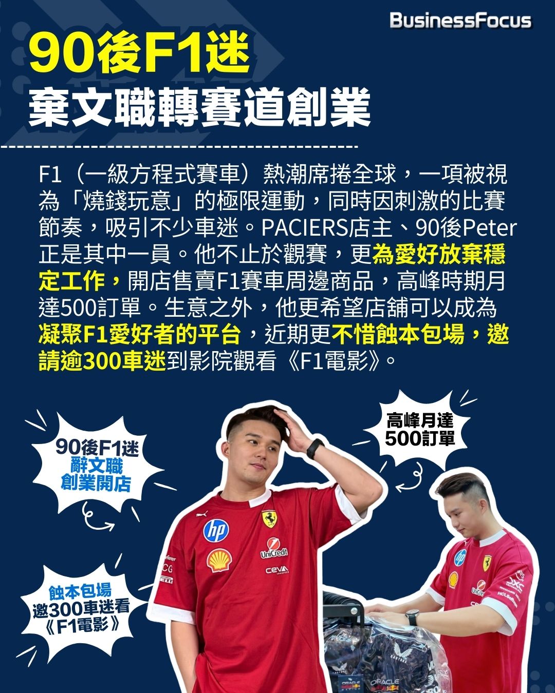 90後F1迷棄文職轉賽道創業 高峰月接500訂單 蝕本包場邀300車迷看F1電影