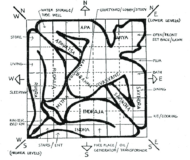 除了印度,古埃及的建築與四方圖也有驚人聯繫。大金字塔的土地規劃與四方圖結構相似,據推測可追溯至公元前 10,000 年,甚至被認為是亞特蘭蒂斯的遺跡。學者 Schwaller de Lubicz 揭示了埃及的 monk-canevas(網格方圖),強調功能性幾何學代表精神概念。數字 8 與 9 的和諧關係,涉及音樂基調與幾何比率(如賈比爾數字 17),也在哥特式教堂的迷宮設計中重現。盧克索神廟的 Anthropocosmos 模型與吠陀的 Purusha 相呼應,顯示四方圖自古以來用於測量人類與宇宙的關係。