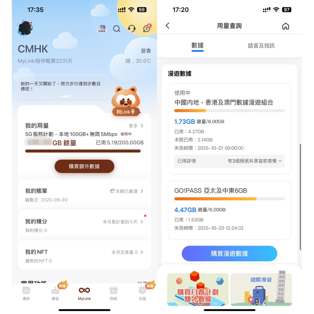 透過MyLink App或CMHK網站,可實時查詢數據用量。全速數據用畢後可即時加購,隨時掌握數據使用狀況。 - 24小時專業支援,溝通無礙: