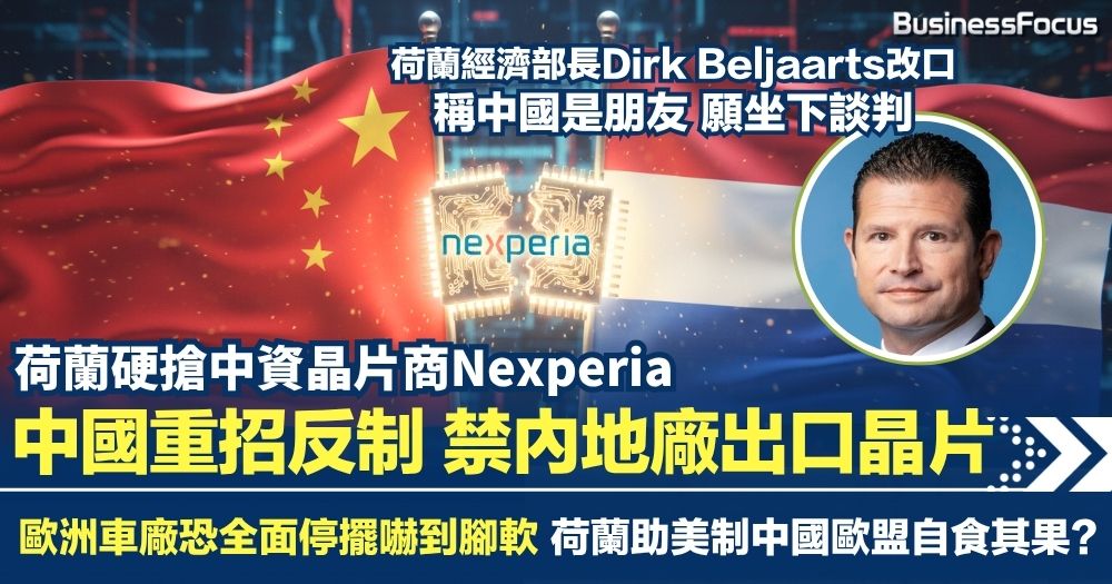 自荷蘭政府以國家安全為由,史無前例地動用冷戰時期法規,強制接管半導體公司Nexperia半導體(安世半導體)並凍結其資產後,被許多人認爲是加入美國戰隊制裁中國,而且亦讓全球晶片供應鏈再度拉響警報!這項行動引發了中方的強烈批評,中國商務部更是迅速「反擊」,禁止Nexperia半導體中國及其分包商,出口在中國生產的特定晶片及部件,直接衝擊許多歐洲汽車商包括BMW、平治、福士、法拉利等,甚至可能因此在數周内停擺,引起了汽車商的恐慌,促使歐洲汽車製造商協會對荷蘭政府强烈呼籲尋求新的解決方法。在荷蘭政府進退兩難之下,荷蘭經濟部長德克·貝利亞茨(Dirk Beljaarts)亦在電視鏡頭前鬆口,稱「中國與荷蘭是朋友」,認為可共同找到出口管控的靈活方案,態度軟化,令人關注荷蘭是否會作出讓步。