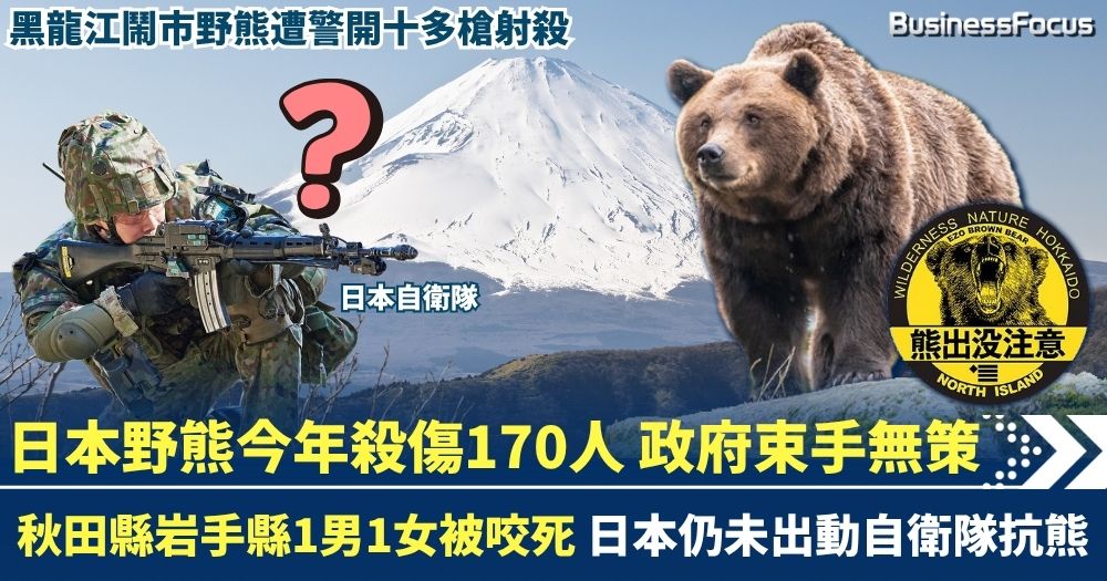 日本野熊今年殺傷170人 秋田縣岩手縣1男1女被咬死 未出動自衛隊抗熊 政府無能?