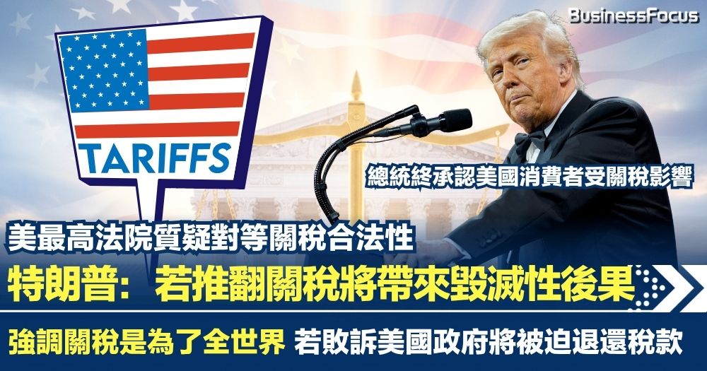 若最高法院最終裁定特朗普總統無權援引《國際緊急經濟權力法》徵收對等關稅,美國政府恐需退還所徵收的關稅,帶來毁滅性後果。根據案件推展,若延至2026年6月,已徵關稅金額可能高達7,500億美元(約5.85萬億港元)至1萬億美元(約7.8萬億港元),無疑是對美國財政與政局或將是一記沉重打擊!