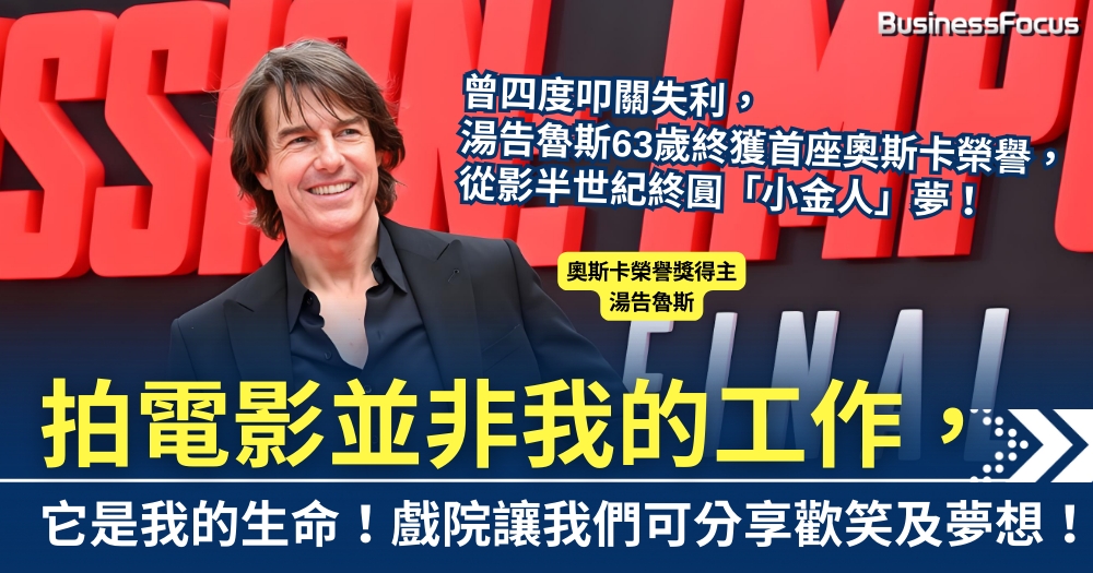 荷里活永遠的「拼命三郎」湯告魯斯(Tom Cruise)雖是美男子,但為追求最佳電影效果他從不錫身,跳海跳崖也無怨言,單是《職業特工隊》便創造了過360億港元的總票房,惜半生與大獎絕緣。幸在63歲這一年,湯告魯斯終於在第16屆奧斯卡理事會獎(Governors Awards)獲頒「奧斯卡榮譽獎」,迎來演藝生涯首座小金人!頒獎當晚,由正在與他合作新片的《神鬼獵人》導演Alejandro G. Iñárritu親自頒獎,兩人即將在2026年帶來目前最神秘的超級大片。湯告魯斯在台上感性致詞:「拍電影不是我的工作,是我的生命。」這句話讓全場起立鼓掌,也讓全球影迷淚崩。