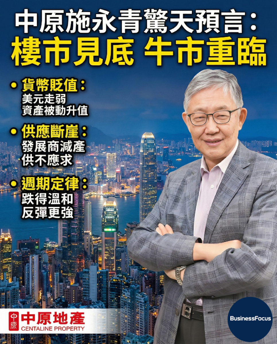 在香港這個曾經「買樓必升必發達」的地產城市裡,樓價每次大起大落,都會牽動著百萬港人包括業主的神經。正當大多數分析師對2025年的樓市抱持「審慎樂觀」甚至「防守」的態度時,中原地產集團創辦人施永青卻在專欄作出驚天預言,他指樓市已見底,料牛市重臨,未來六年樓價與今年3月低位比較,有機會累升高達85%。他的樓市超長牛市快重臨的預測,究竟是狂想還是先知?