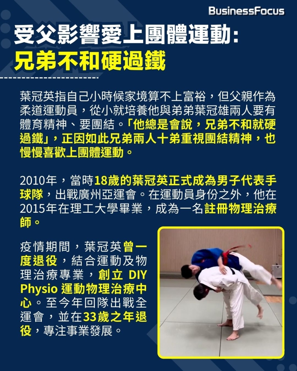 香港手球代表隊早前在全運會歷史性打入四強,為香港手球譜下歷史。比賽過後這些香港之光重拾日常,當中門將葉冠英(Addy)在賽後退役,運動員身份之外,他更是註冊物理治療師、創業家。