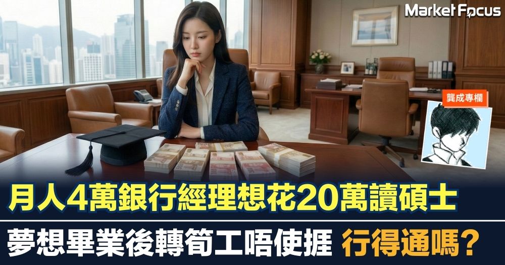 【龔成專欄】月人4萬銀行經理想花20萬讀碩士 夢想畢業後轉筍工唔使捱 行得通嗎?