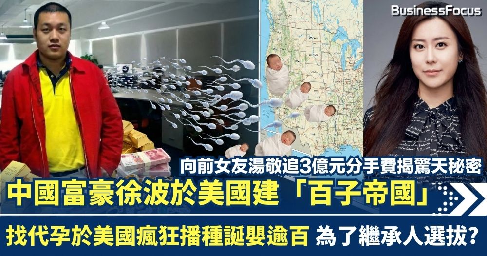 與前女友湯敬3億元分手費官司 揭中國富豪徐波於美國建「百子帝國」 找代孕瘋狂播種誕嬰
