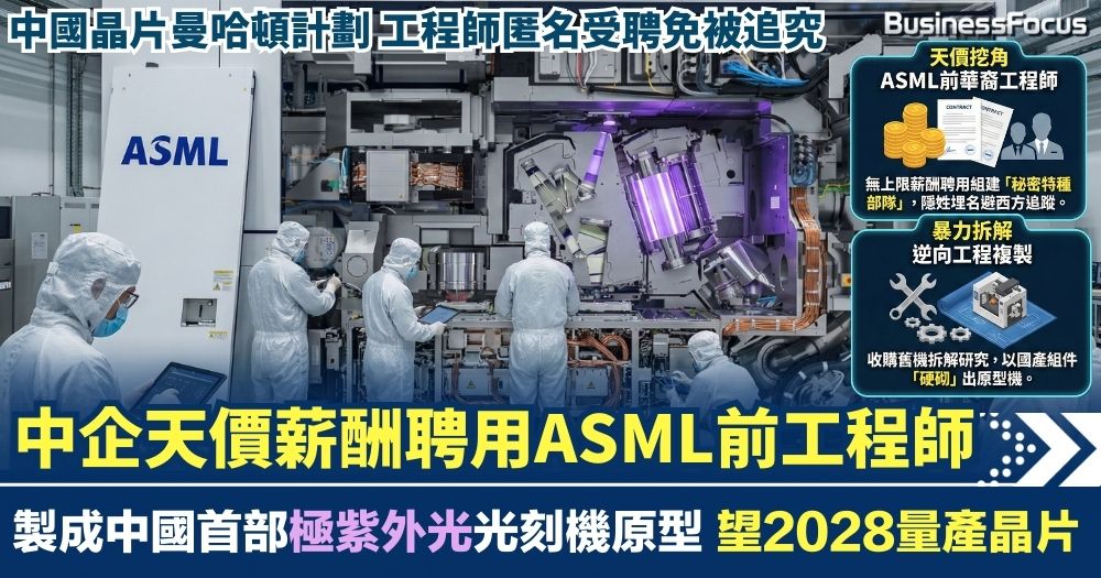 在深圳一座保安森嚴、猶如軍事堡壘的實驗室內,一台體積龐大、幾乎佔據整層廠房的巨型機器正在發出幽藍的光芒。這不是科幻電影的場景,而是中美科技冷戰中最關鍵的一場戰役:中國企業據報憑著以天價薪酬聘用的荷蘭光刻機巨頭ASML的多名華裔前工程師,加上大量專家進行逆向工程,發掘出ASML光刻機的最高機密,終成功研製出中國首部自家「極紫外光(EUV)光刻機」原型機,有機會突破美國的AI晶片封鎖,在2028年量產高質晶片。這場被喻為「中國版曼哈頓計劃」、機密性及重要性或媲美原子彈研究的科研計劃背後,並非單純的技術攻關,而是一場涉及無上限天價挖角、商業機密爭議以及一群「隱形」華裔工程師的豪賭,卻也令中國捲入抄襲甚至盜竊西方最先進科技的爭議之中。