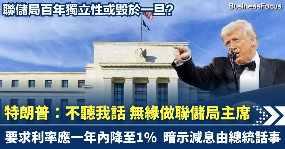 特朗普總統:不聽我話便無緣做聯儲局主席 指利率1年內應降至1%