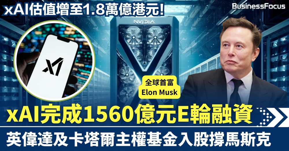 本次xAI的融資規模遠超早前設定的150億美元目標,最終鎖定在200億美元,創下行業紀錄。是次融資陣容強大,包括晶片巨擘英偉達(Nvidia)、中東主權基金卡達投資局(QIA)及阿布達比的MGX等。當中英偉達出資約20億美元(約156億港元),以股權形式投資。