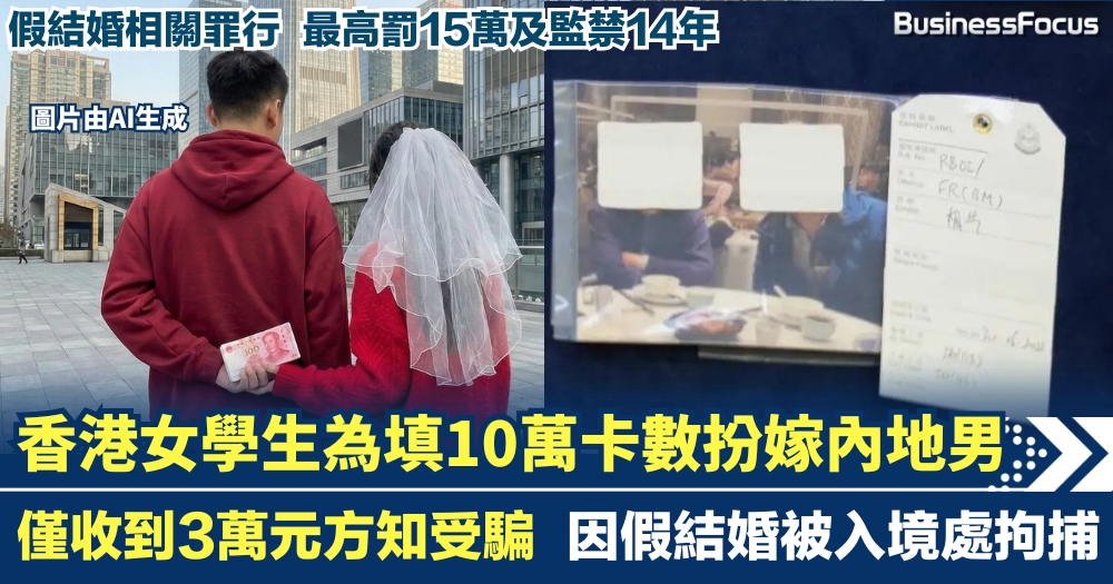 20歲香港女學生為填10萬卡數扮嫁內地男 遭壓價僅獲3萬 因假結婚被入境處拘捕面臨監禁