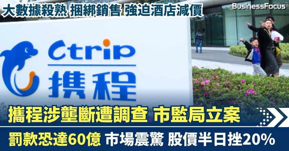 在線旅遊(OTA)龍頭攜程集團(9961)涉嫌濫用市場支配地位實施壟斷行為立案調查,引發股價大幅下跌,本週四(1月15日)股價跌幅近兩成。近日,國家市場監督管理總局正式發布公告,宣布根據前期核查,依據《中華人民共和國反壟斷法》展開對攜程的立案調查。市場普遍擔憂,若壟斷罪名成立,攜程面臨的巨額罰金或高達60億元人民幣,而且更可能被迫改變其核心的商業變現模式。