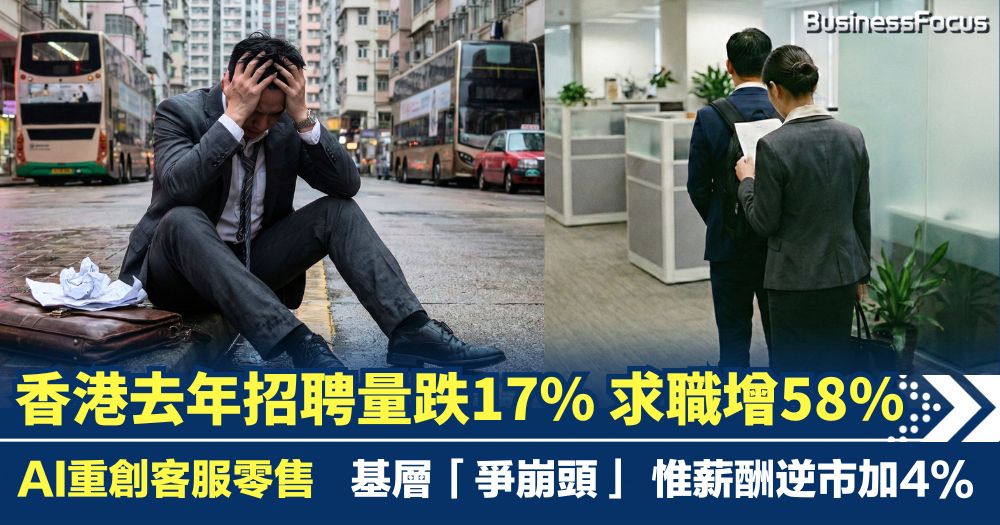 香港去年招聘量跌17% 求職申請增58% 基層「爭崩頭」惟薪酬逆市加4%