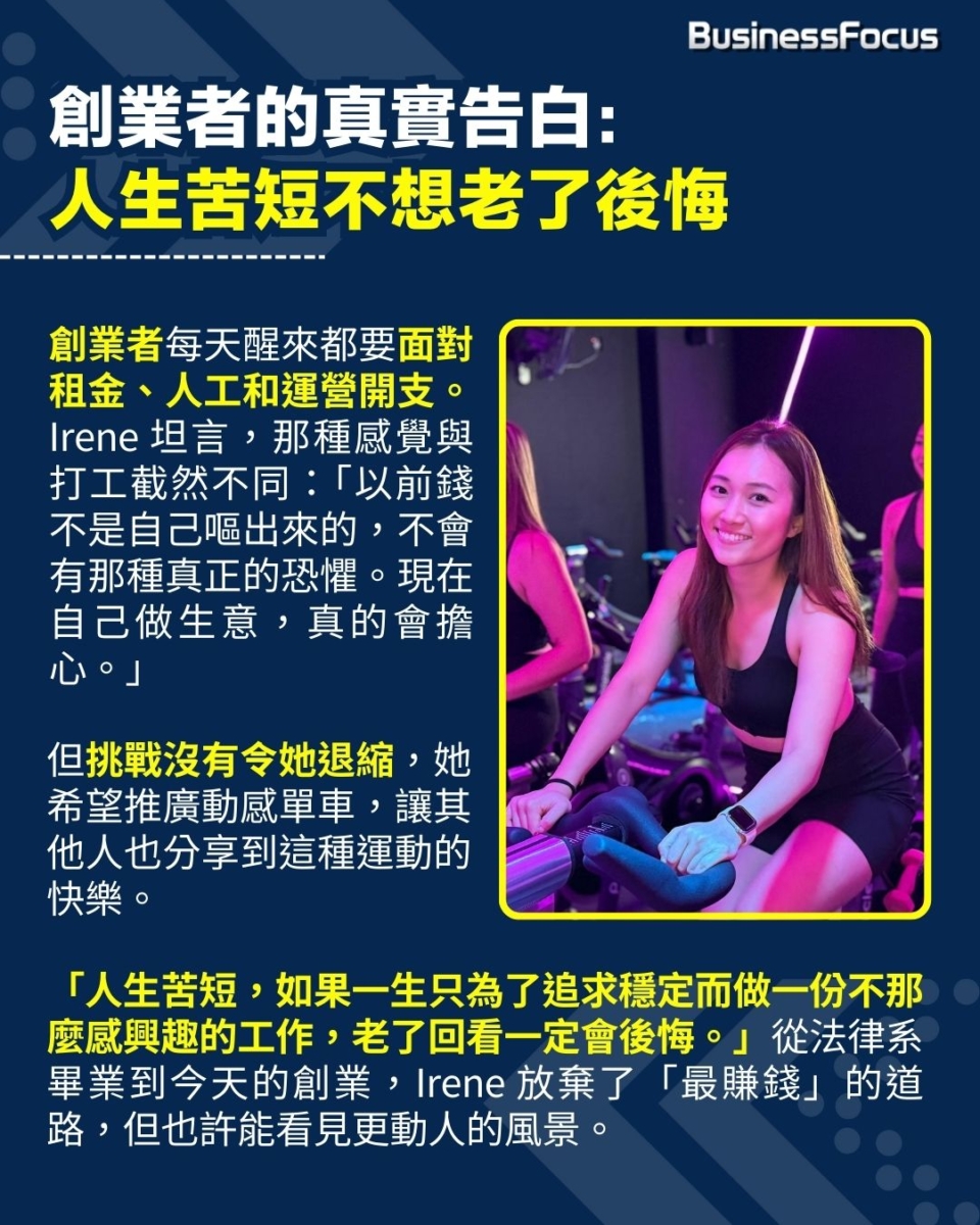 不當律師、棄十年工作收成期 90後女生創業開動感單車館:人生苦短,要為自己熱愛的事試一次