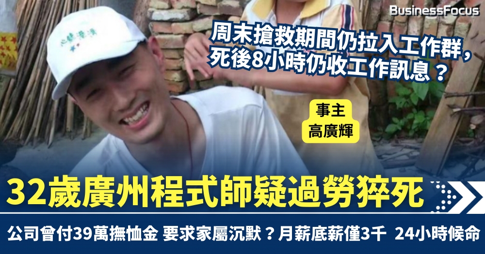 32歲廣州程式師疑過勞死 死後8小時仍收工作訊息 公司付39萬撫恤金 要求家屬沉默?