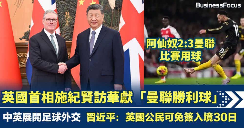 事隔八年,英國首相再次踏足中國!當英美兩國因格陵蘭及關稅問題起摩擦之際,英國首相施紀賢(Keir Starmer)「尋求突破」,近日展開任內首次訪華行程,除了打破自2018年以來的外交僵局,更以「足球外交」作為修補關係的起手式。身為阿仙奴擁躉的施紀賢,特意向習近平贈送剛擊敗愛隊的曼聯簽名足球。雙方在輕鬆氛圍下促成了多項實質成果,包括中方宣布給予英國公民30天免簽入境待遇,展現出兩國在地緣政治角力下,趨向「務實接觸」的新路向。
