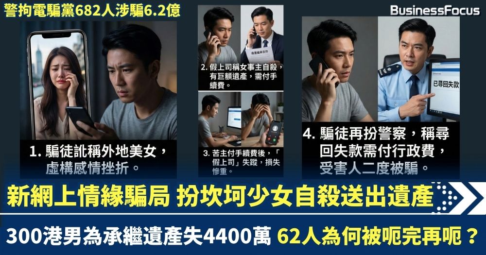 警拘電騙黨682人涉騙6.2億 扮坎坷少女自殺送出遺產 300港男為承繼失4400萬 62人為何被呃完再呃?