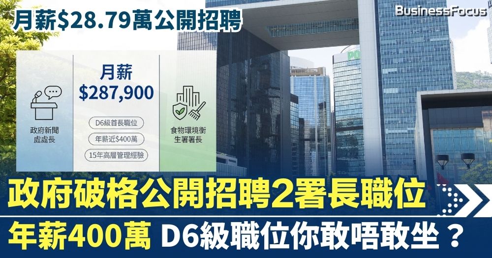 【BF職場分析】政府破格公開招聘2署長  月薪28.79萬 年薪400萬的D6級首長職位你敢唔敢坐?