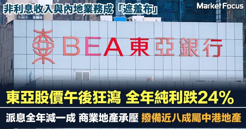 東亞銀行(0023)2025年全年純利按年大跌24%至35億元,主因受累於淨息差(NIM)收窄19個基點及投資物業大幅減值。儘管內地業務淨溢利反彈45%,但整體中港商業房地產相關撥備佔比高達77%,加上派息大減,觸發市場恐慌拋售。