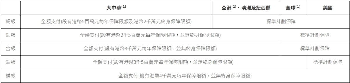 - 對於「愛·護航」自願醫保靈活計劃,你可就計劃選項獲享以下地域範圍的全額支付金額: